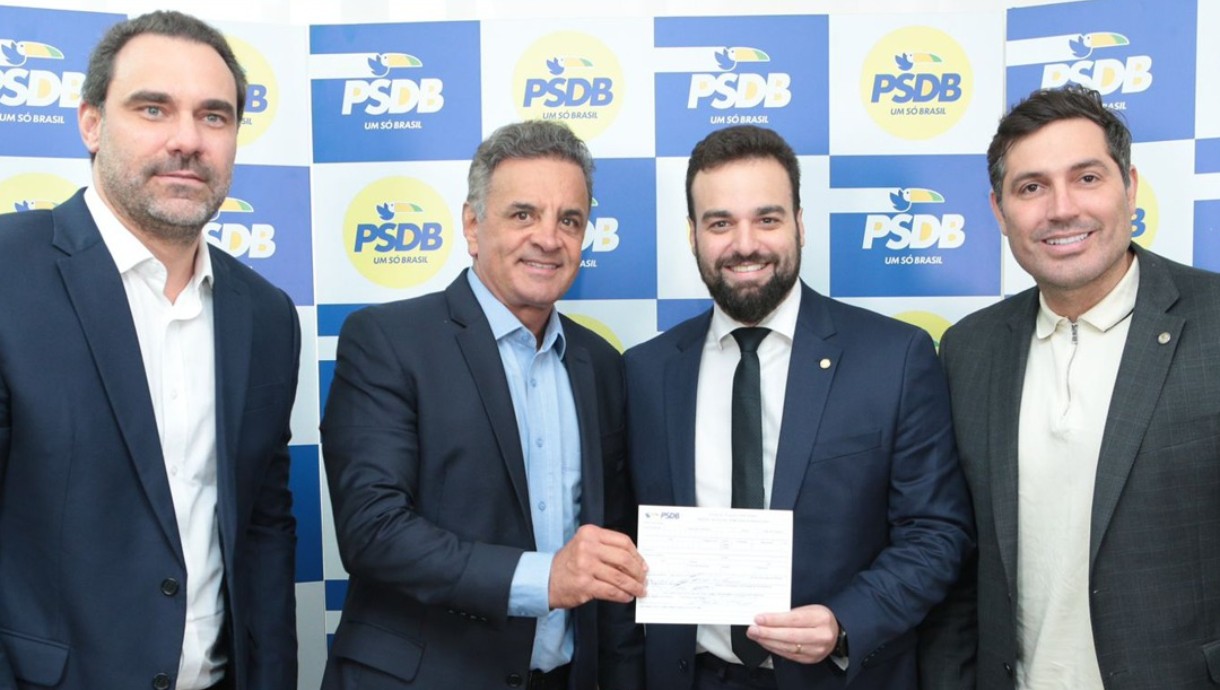 Na foto mostrando a sua filiação ao PSDB, Caio Vianna botou frente ao lado dos caciques tucanos. Caio aparece ao lado do presidente nacional do PSDB, o deputado federal Aécio Neves, Luciano Vieira, presidente estadual do PSDB e do deputado federal Adolfo Viana, secretário geral nacional do PSDB.
